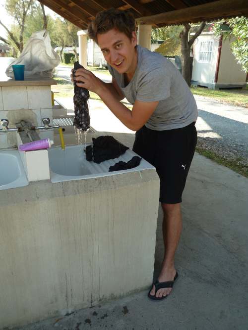 So schön das Dorf und der Strand sind, so hässlich ist der Campingplatz. Beim waschen wird man begleitet von Eingeweide-essenden-Katzen, Stoff für schöne Träume!