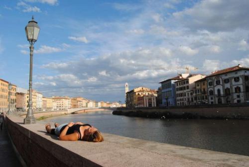 Gestern haben wir uns mal wieder in den Zug gesetzt, ab nach Pisa. Eigentlich hätten wir hier gerne endlich mal wieder auf einer Couch geschlafen, jedoch sind die Italiener scheinbar nicht all zu scharf auf uns. Also mal wieder im engen Zelt schlafen, aber immerhin haben wir Tisch und Stuhl! Das abermalige Übernächtigen auf dem Campingplatz tut der Schönheit der Stadt keinerlei Abbruch; sobald man einigermaßen vom natürlich impulsanten aber auch völlig überlaufenen schiefem Turm entfernt ist, entpuppt sich Pisa als ein entspanntes, kleines Studentenstädchen.